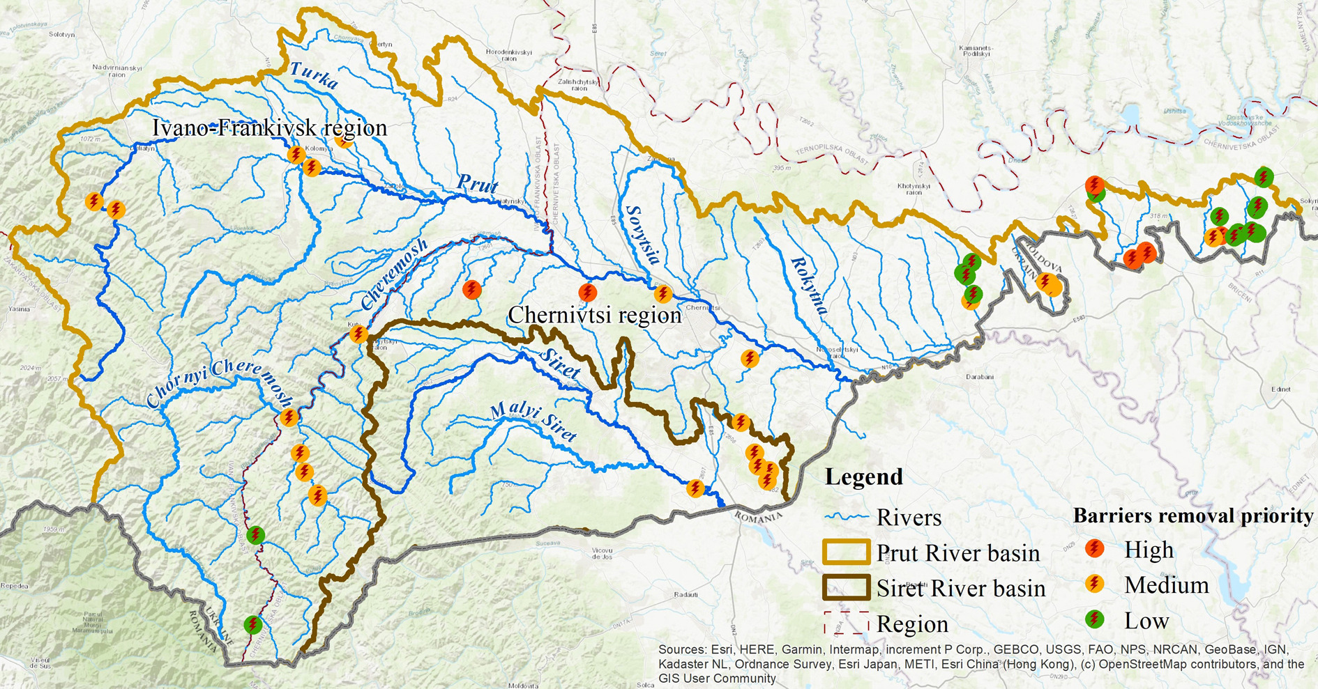 This study aims to address the lack of comprehensive data on barriers in small rivers by collecting and systematizing relevant information, conducting field surveys, and involving local communities in the process of barrier removal. Furthermore, one of the key objectives of this research is to define criteria for prioritizing artificial barriers for removal, thereby facilitating the restoration of longitudinal continuity in small rivers within the Prut and Siret River basins, improving their ecological status, and supporting the sustainable development of aquatic ecosystems in the region.